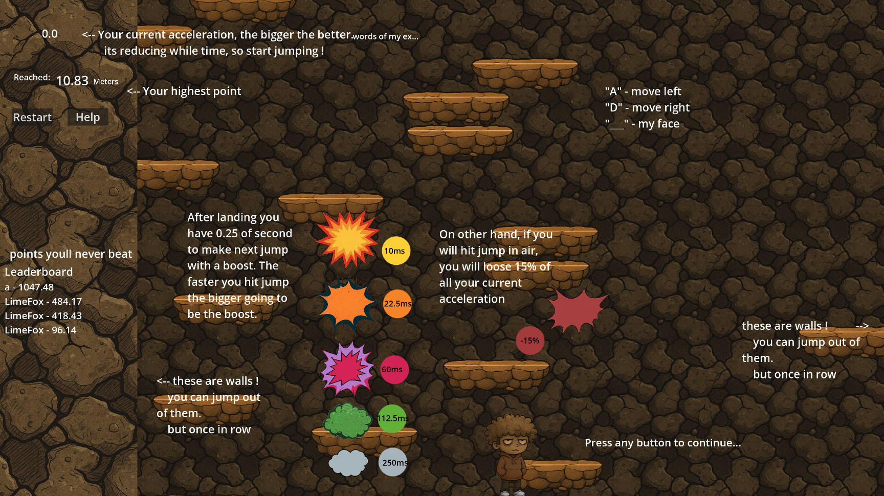 Inspired by old game "Icy tower", this is my week experiment, so go and jump...
